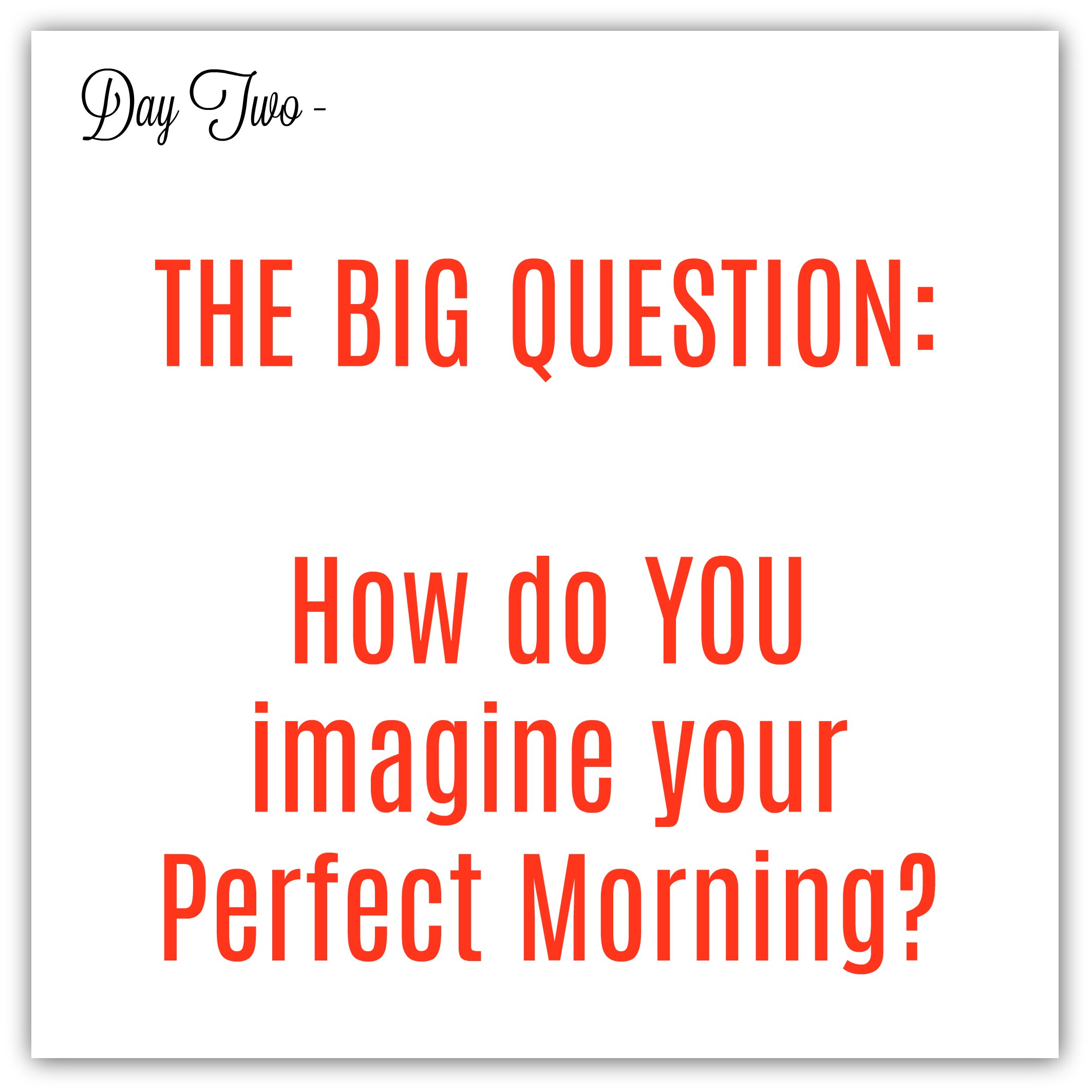 Your best morning -- who doesn’t want a best or what some might call, a perfect morning? So how do we define what that is? Well let’s begin with a few questions as we think about what your best day might look like.