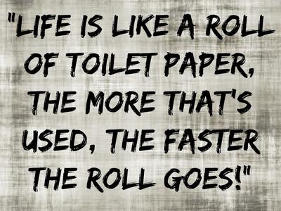 "Life is like a roll of toilet paper, the more that's used, the faster the roll goes!"