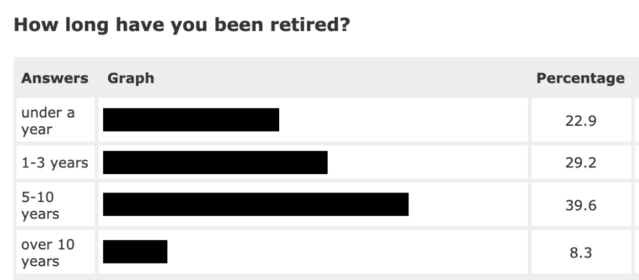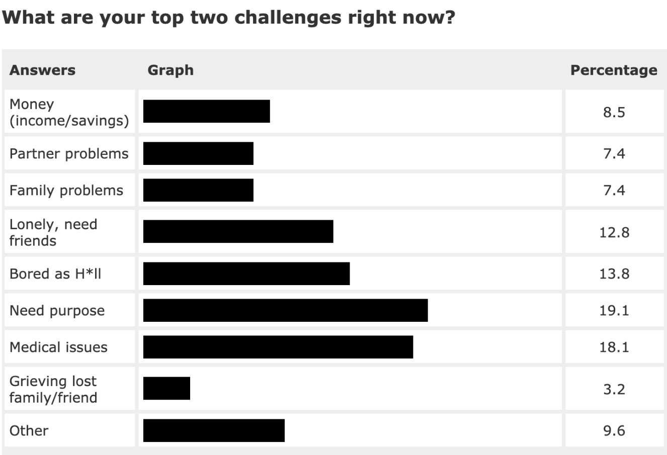 The results below are from the first week of this Happiness Survey but it gives a good idea what retirees are worried about!