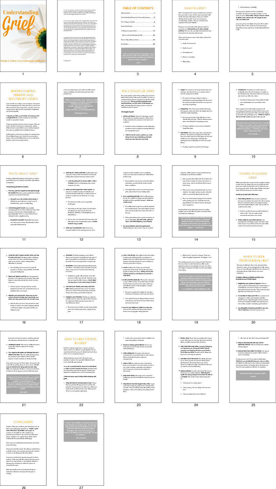 Understand Grief eBookIt's never easy, of course, but knowing the stages of grief and knowing "it's not just me... this is normal" is a big step towards life again. Just like with new retirement transition, the simple knowledge that this is normal helps. |