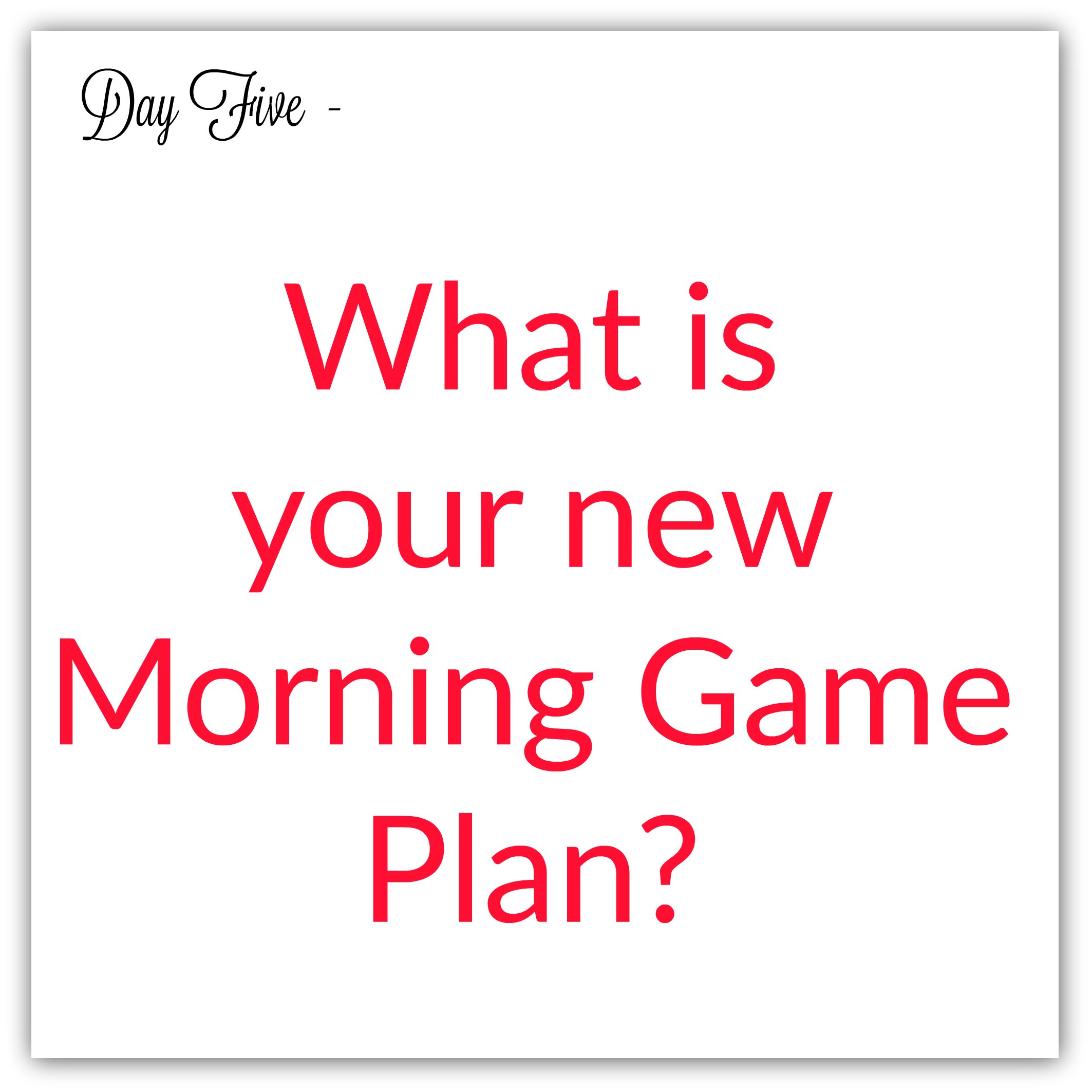 Making over your morning, and turning it into a new routine, isn’t something that comes naturally to most of us. It takes a little while to get into the groove of things. We’ll look at this in a little more detail tomorrow. For right now, my suggestion is that you write your new morning game plan down.