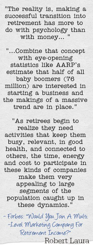 Don't run from technology either. It's not a big deal. It's a challenge, like your new cell phone... like retirement itself, consider a home business a fun journey into a new lifestyle!
