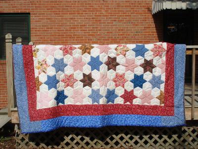 This hobby has given me a sense of purpose and meaning and I thoroughly enjoy it. I put a border on the quilt top, filling and backing.