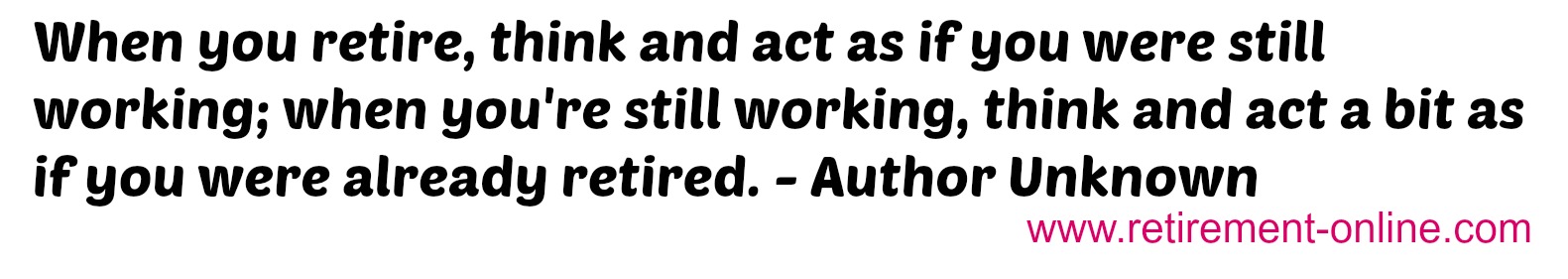 When you retire, think and act as if you were still working; when you're still working, think and act a bit as if you were already retired. - Author Unknown