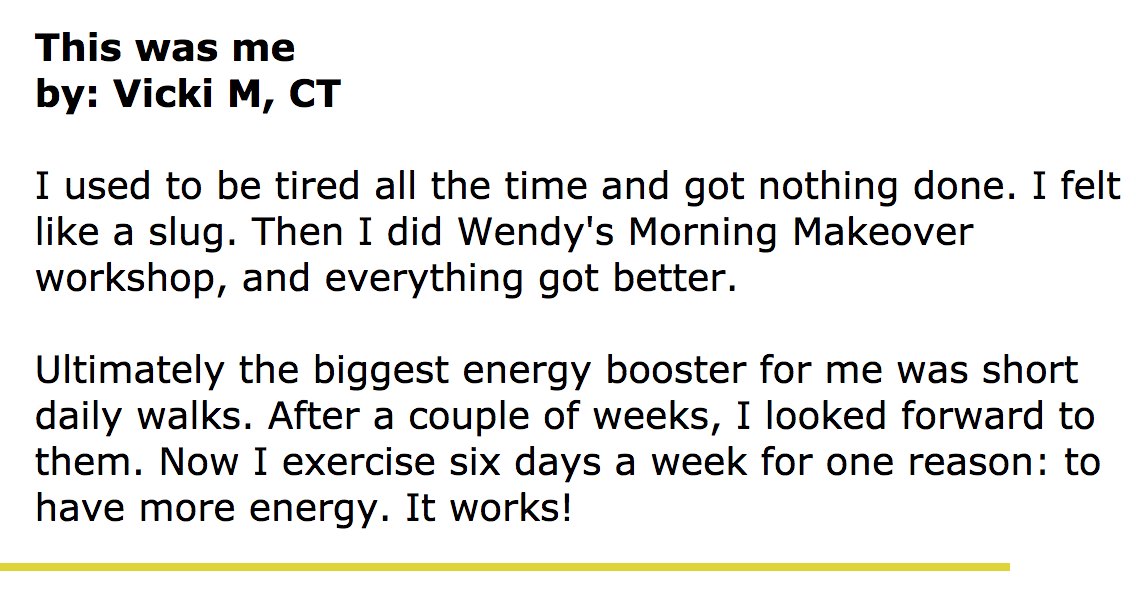 Every day you’ll get an email with a tip or a strategy designed to help you. We both hope these tips for your morning makeover work well!