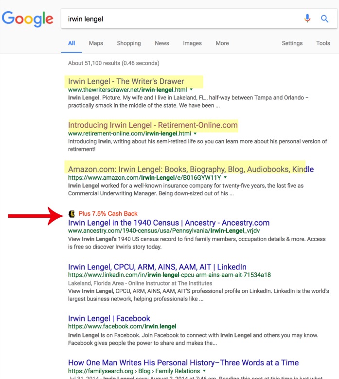 Psst! See the red arrow, Irwin's Ancestry.com 1940 census and if i click and join, 7.5% cash back from Ebates! Love using Ebates... it really adds up for me!